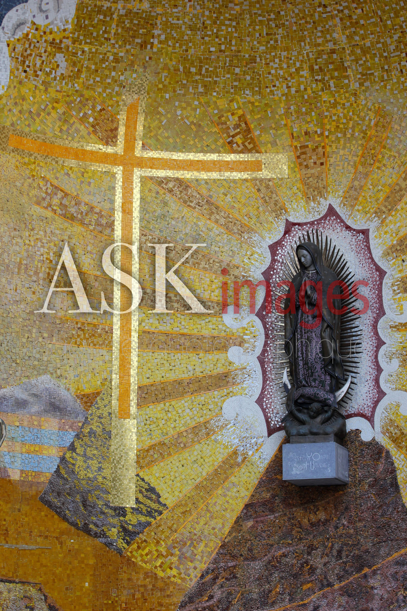 | Description | Europe, Occitanie, Hautes Pyrenees, Lourdes, chapelle semi-circulaire creusee dans le rocher a cote de la basilique notre dame du rosaire,elle est affectee au culte et consacree a notre dame de guadalupe, evoquant le plus important site marial d'Amerique. |