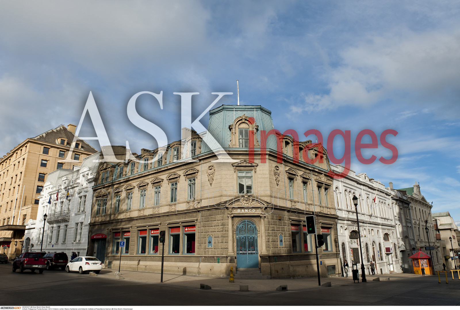 | Description | CHILE / Patagonia / Punta Arenas / Historic center / Banco Santander and Antarctic institute at Plaza Munoz Gamero ..© Oliver Bolch / Anzenberger |