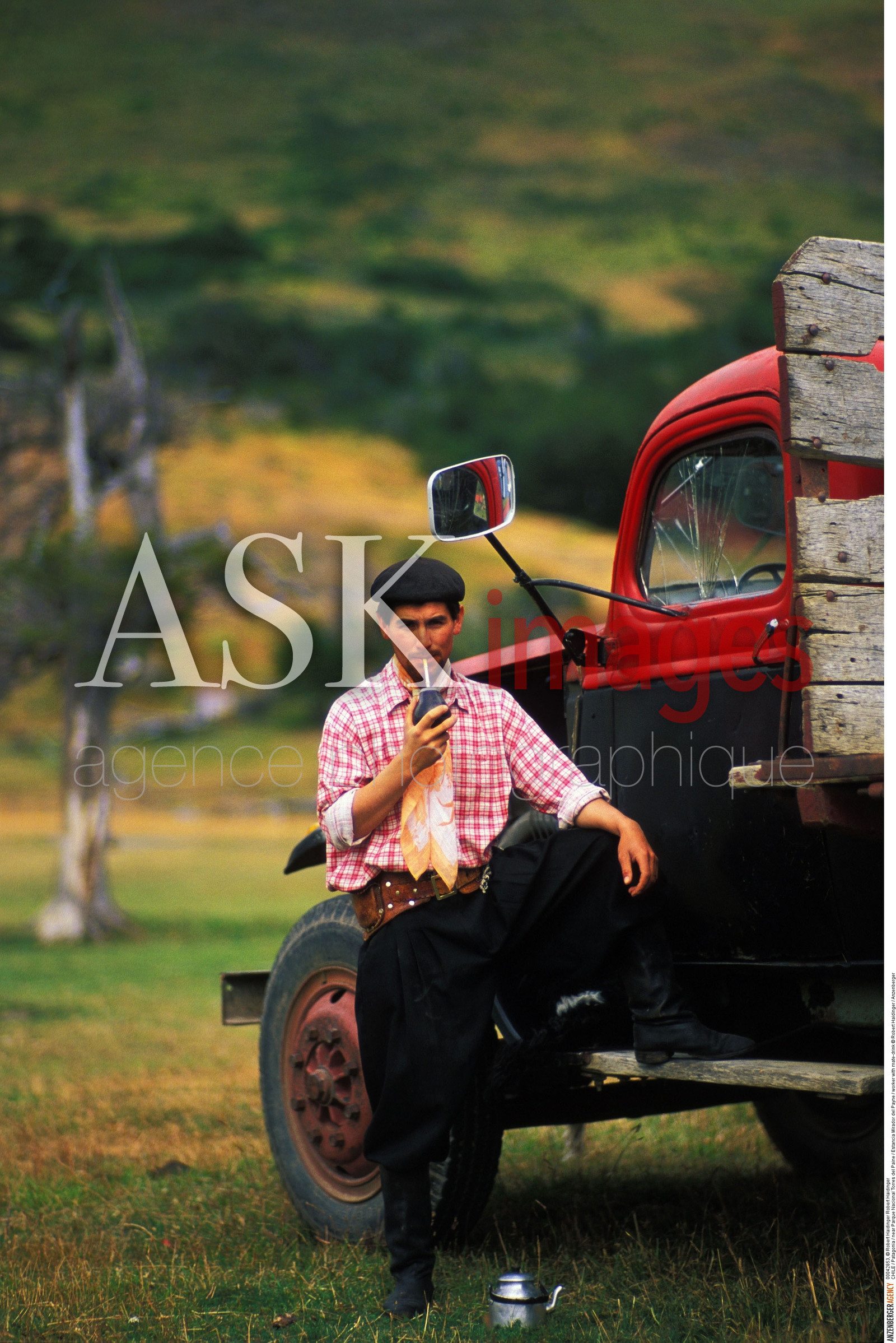 | Description | CHILE / Patagonia / near Parque Nacional Torres del Paine / Estancia Mirador del Payne / worker with mate-drink..© Robert Haidinger / Anzenberger |