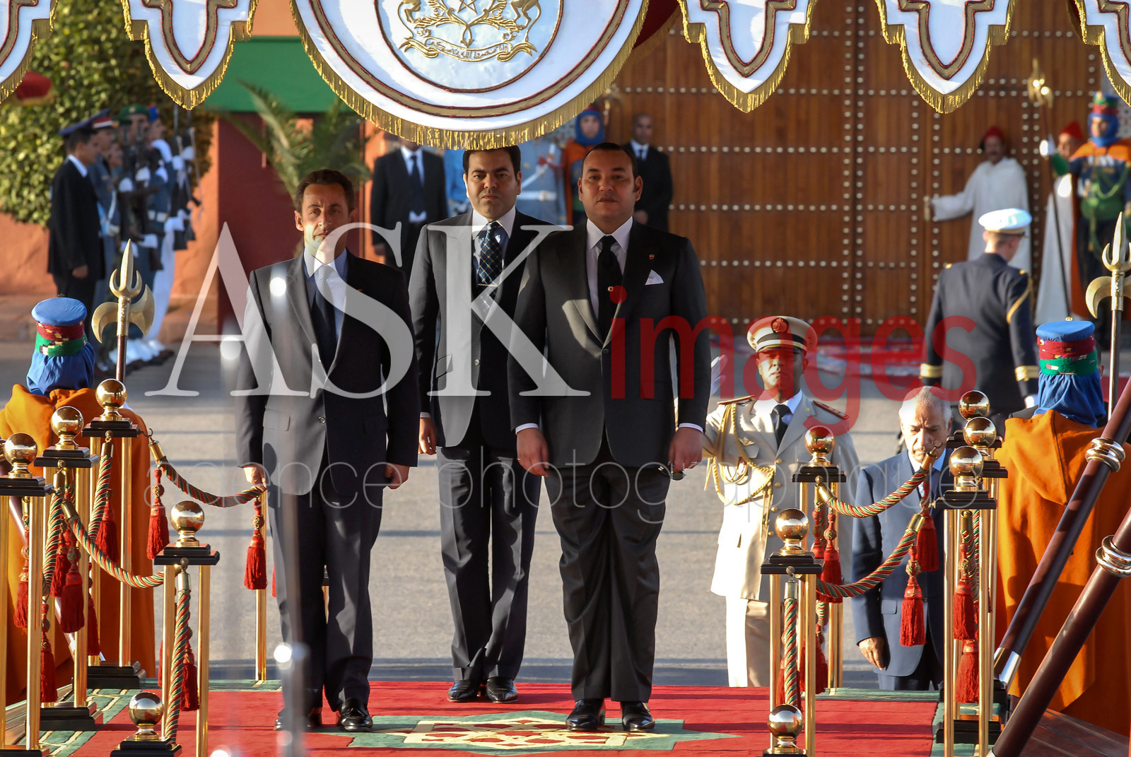 | Description | State visit of Nicolas Sarkozy with the King of Morocco Mohammed VI his brother Prince Moulay Rachid, Morocco |