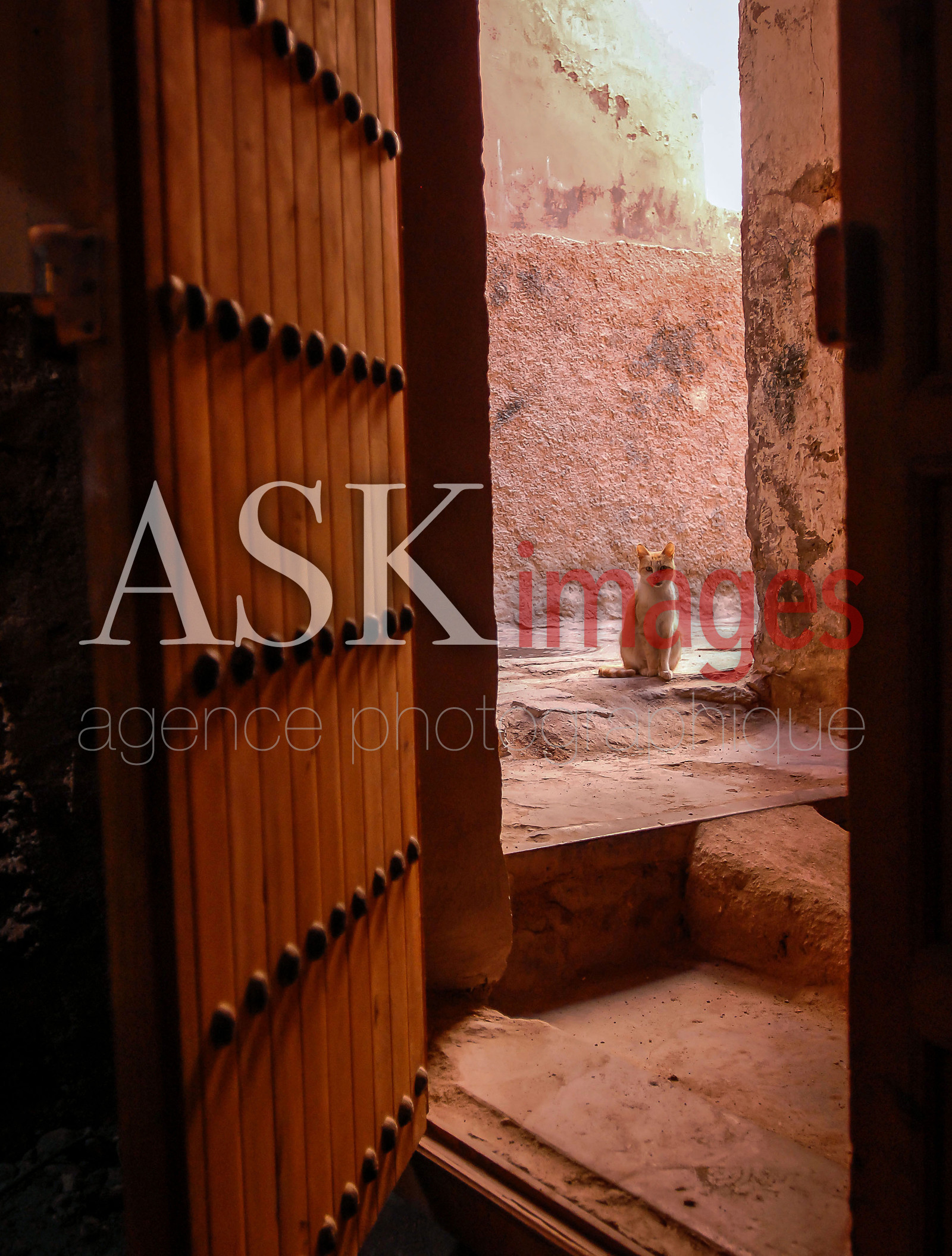 A cat at door in the Medina of Marrakech, Morocco