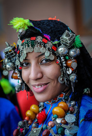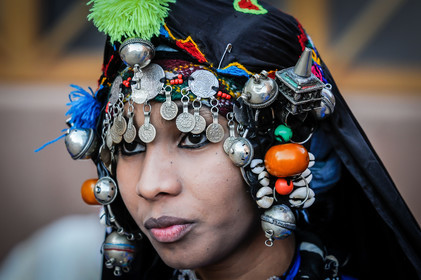 • Portrait of a Moroccan woman in traditional costumes and jewelery, Morocco