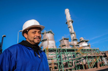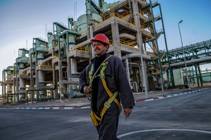 • Moroccan worker on the site of the plant of Phosphates of Jorf Lasfar, Morocco