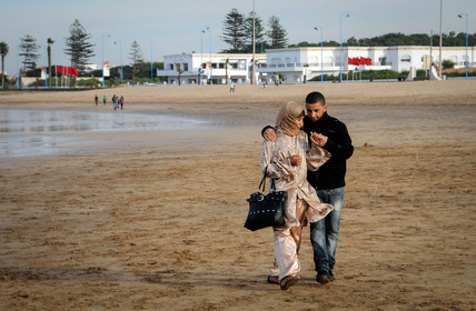 • Moroccan couple on the beach of El-Jadida, Morocco