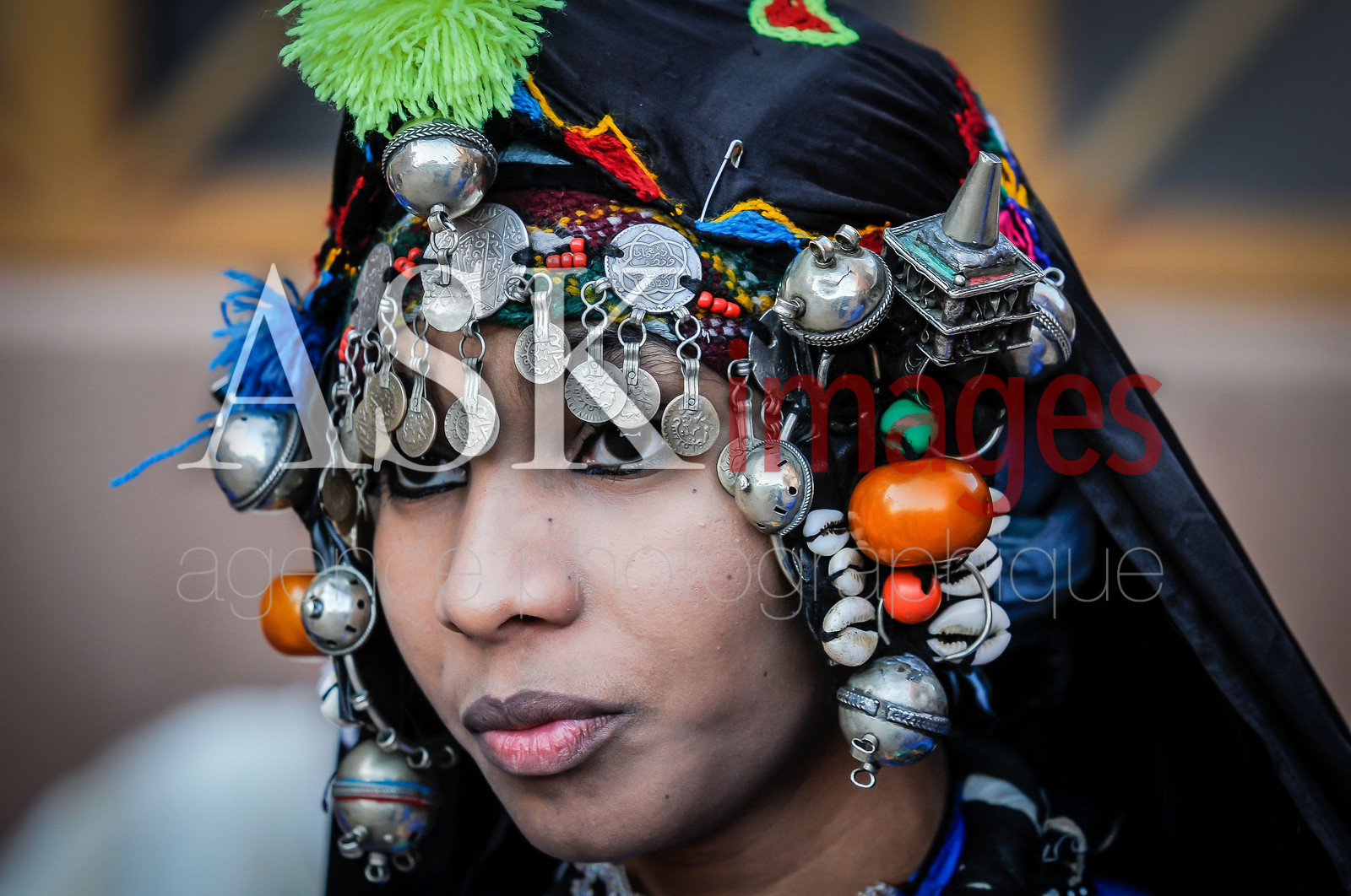| Description | Portrait of a Moroccan woman in traditional costumes and jewelery, Morocco |