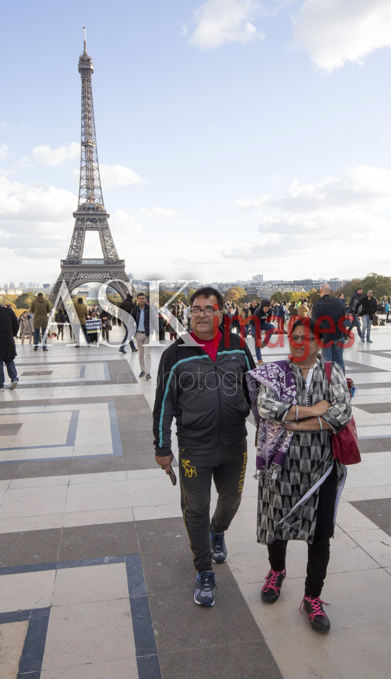 | Description | Indian tourists visiting Paris, Eiffel tower, Trocadero, France |