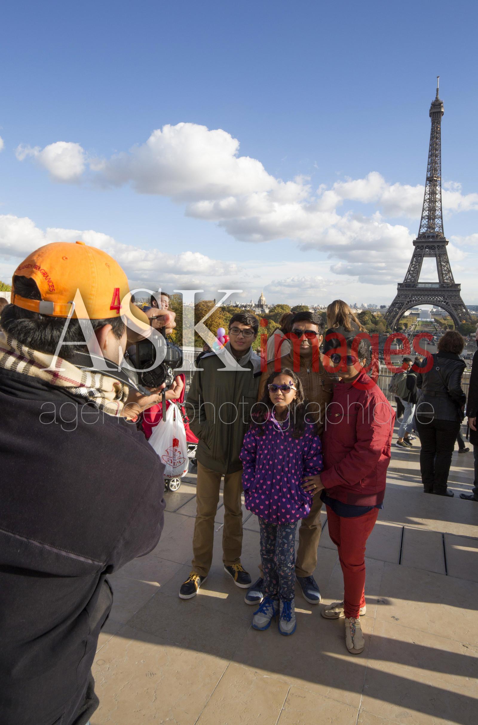 | Description | Indian tourists visiting Paris, Eiffel tower, Trocadero, France |