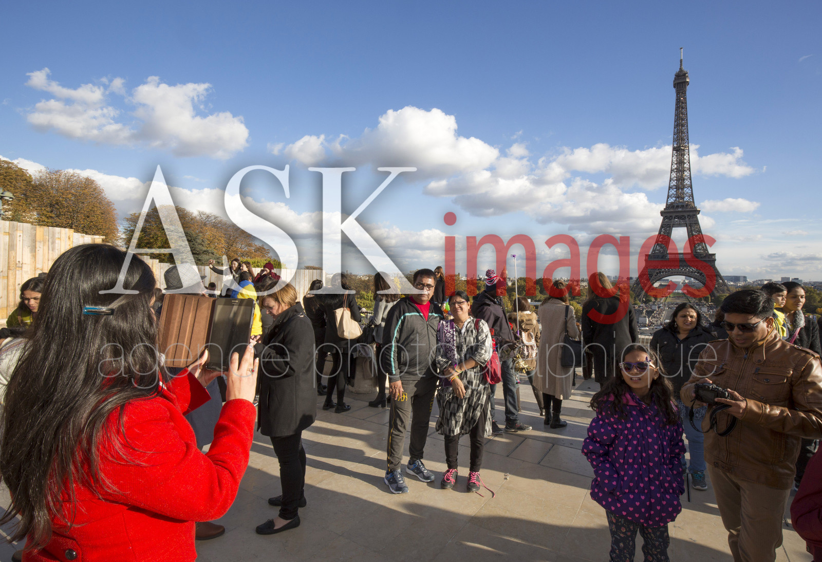 | Description | Indian tourists visiting Paris, Eiffel tower, Trocadero, France |