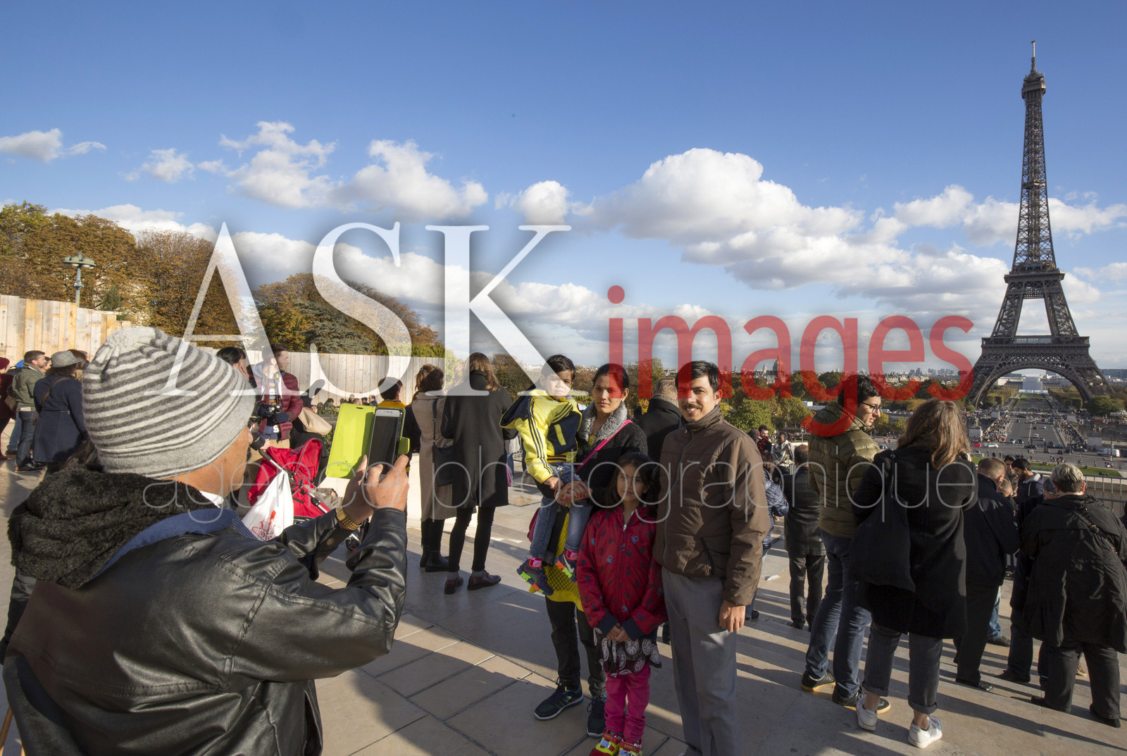 | Description | Indian tourists visiting Paris, Eiffel tower, Trocadero, France |