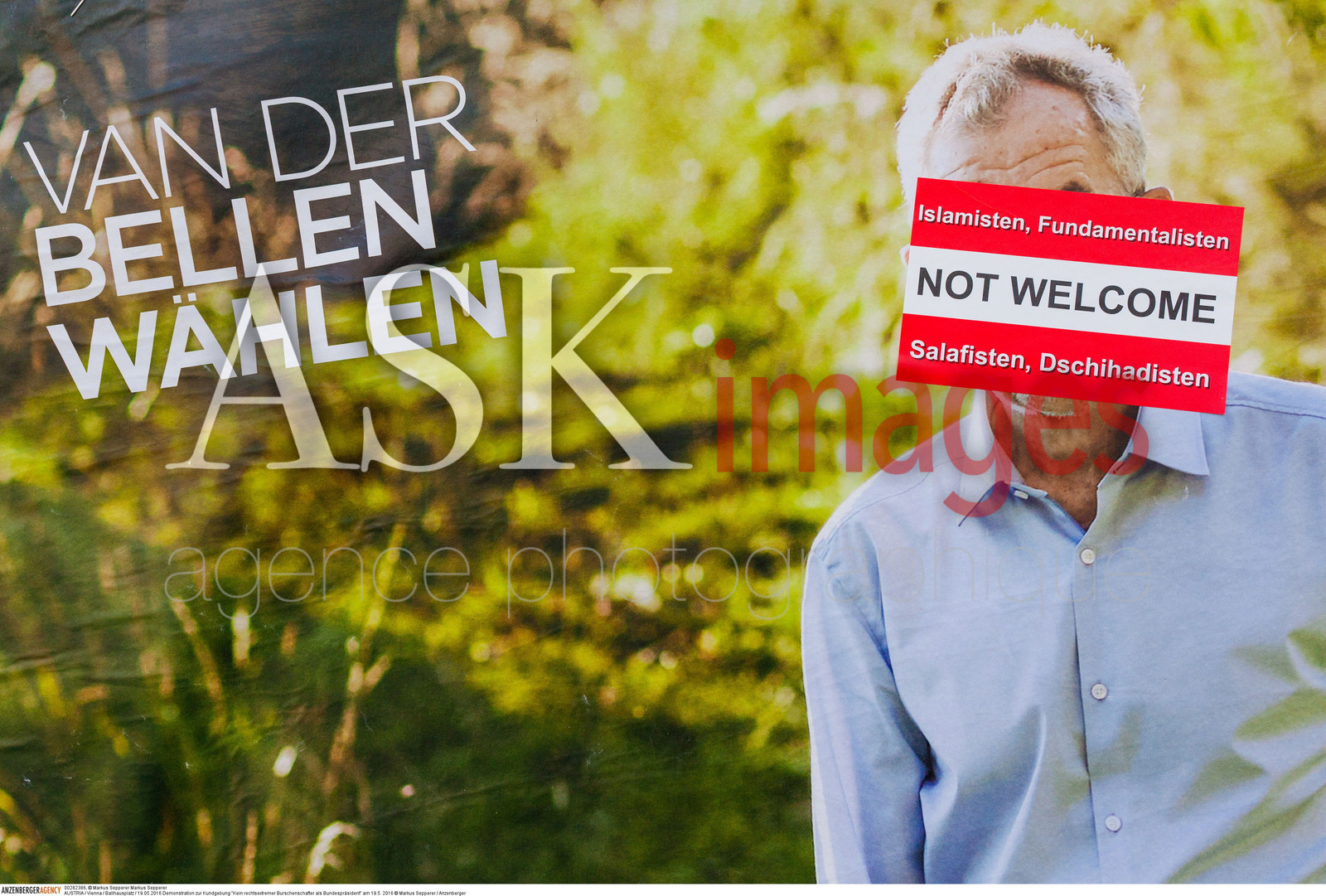 | Description | AUSTRIA / Vienna / Ballhausplatz / 19.05.2016 ..Demonstration zur Kundgebung "Kein rechtsextremer Burschenschafter als Bundespresident" am 19.5. 2016 ..© Markus Sepperer / Anzenberger |