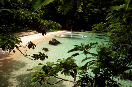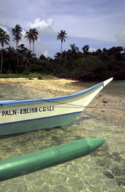 Bangka boat on a beach, Cudugman Island, Bacuit archipelago, Palawan, El Nido, Philippines, El Nido (officially the Municipality of El Nido) is a first class municipality and managed resource protected area in the province of Palawan in the Philippines.