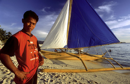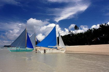 Boat to practice sailing, White beach, Boracay, Philippines, Boracay is a small island in the Philippines located approximately 315km south of Manila