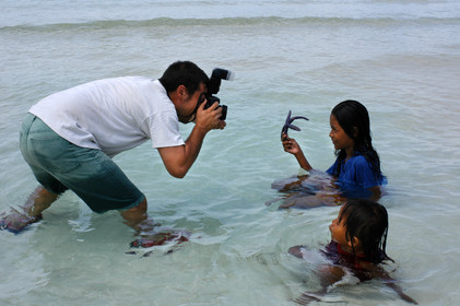 Children playing on the beach, Starfish, White beach, Boracay, Philippines, Boracay is a small island in the Philippines located approximately 315km south of Manila