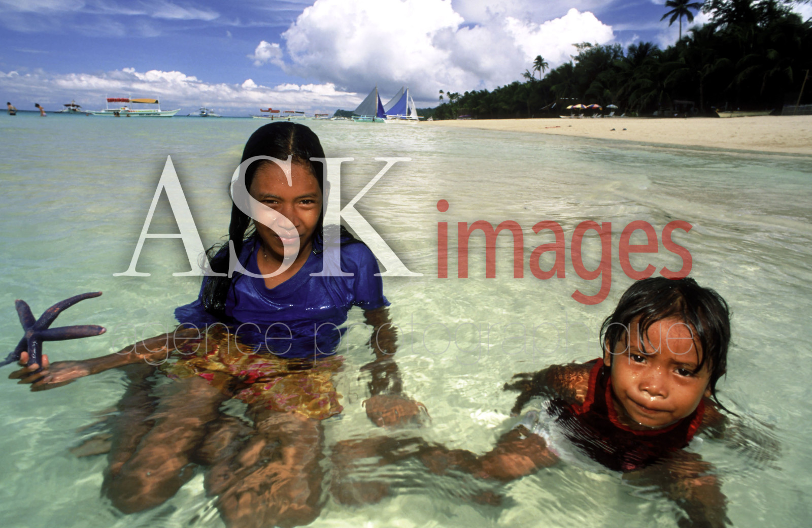 | Description | Children playing on the beach, Starfish, White beach, Boracay, Philippines, Boracay is a small island in the Philippines located approximately 315km south of Manila |
