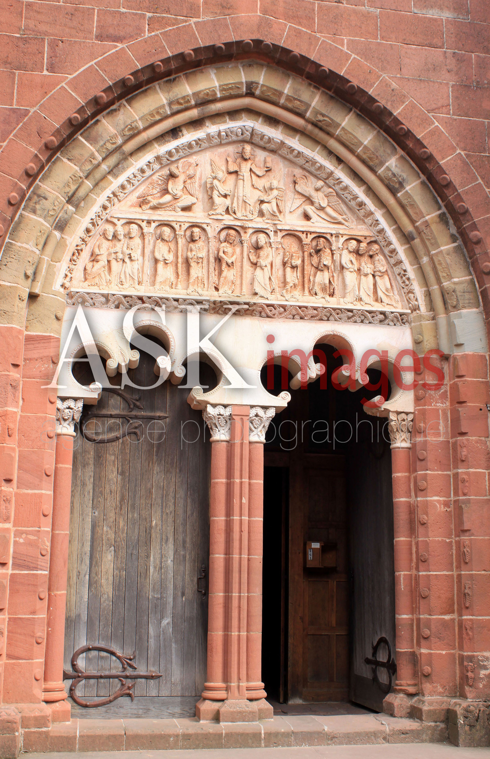 | Description | White stone tympanum of the church Saint-Pierre, Collonges-la-Rouge, Limousin. |