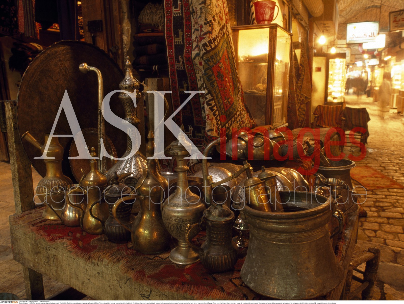 | Description | Syria / Aleppo / The Aleppo souk, probably the best one in The Middle East, is covered by stone archways for about 30km. This makes it the longest covered souk in the Middle East. Once the most important trade area in Syria, a complicated maze of narrow cobbled streets forms this magnificent Bazaar.†Apart from the Khans, there are many separate souks: cloth, yarns, gold, Women's clothes, and the spice souk (where you can enjoy a wonderful mixture of odors.) © Fausto Giaccone/Anzenberger/ASK Images |