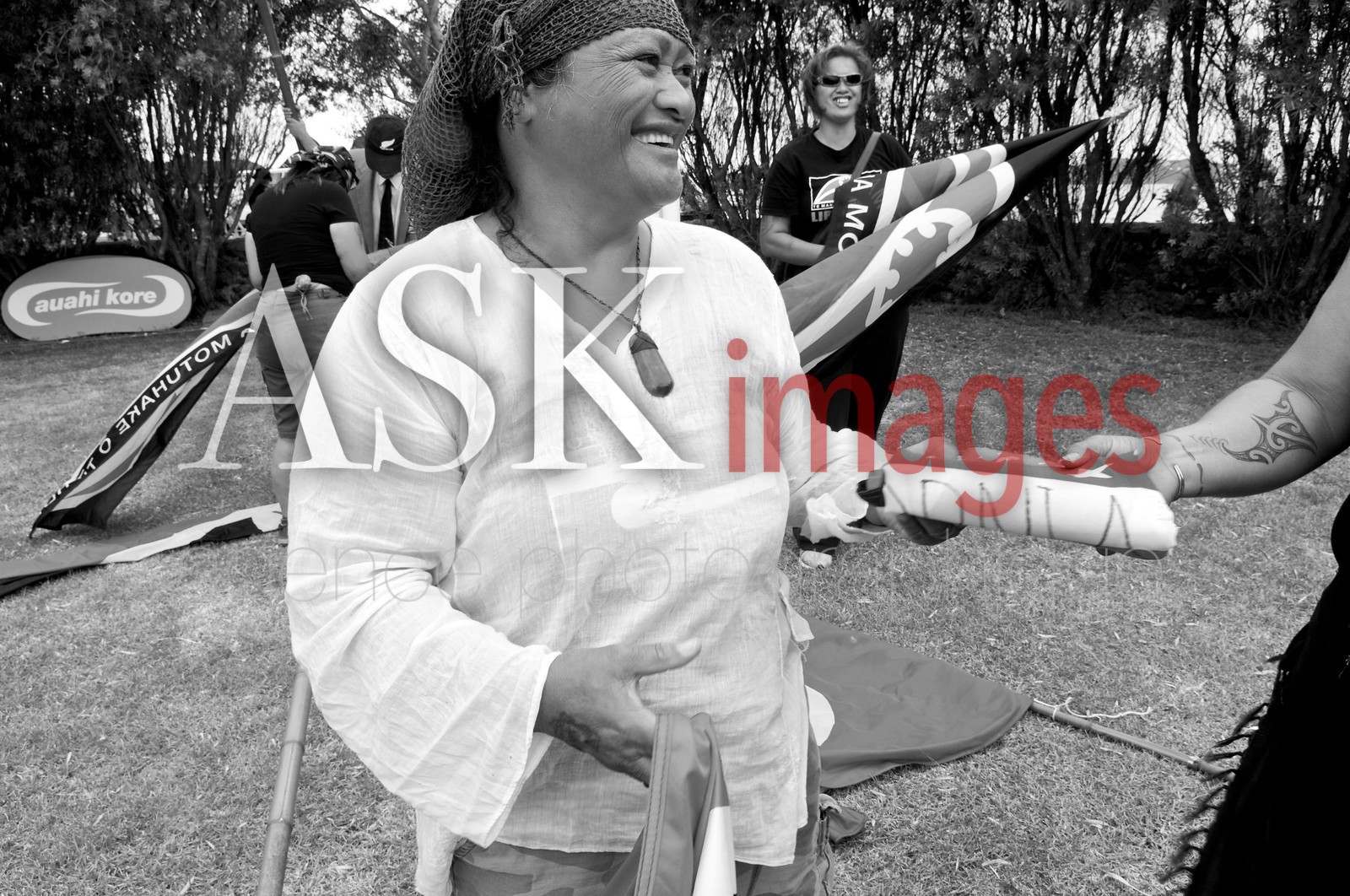 | Description | Two Maori activists exchange tribal flags during Waitangi Day annual commemorations on Waitangi Treaty Grounds, Bay of Islands, North Island, New Zealand |