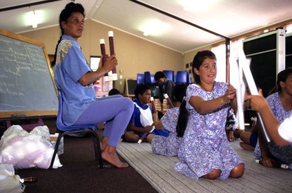 • Kura Kaupapa school. Schoolgirl learning traditional Maori folklore, North Island, New Zealand.