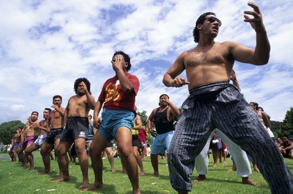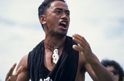 • Haka war dance, Te Waka Huia. Waitangi Day, North Island, New Zealand.