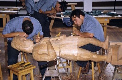 • Young Maori sculptors, Maori Art Institut, Rotorua, North Island, New Zealand.