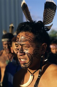 • Young Maori warriors, Ngaruawahia river regatta, North Island, New Zealand.