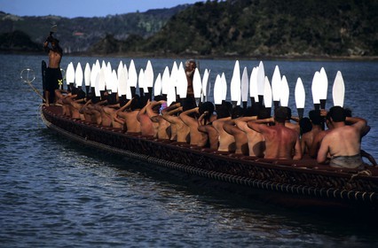 • A waka, Maori pirogue, Waitangi Day, North Island, New Zealand.