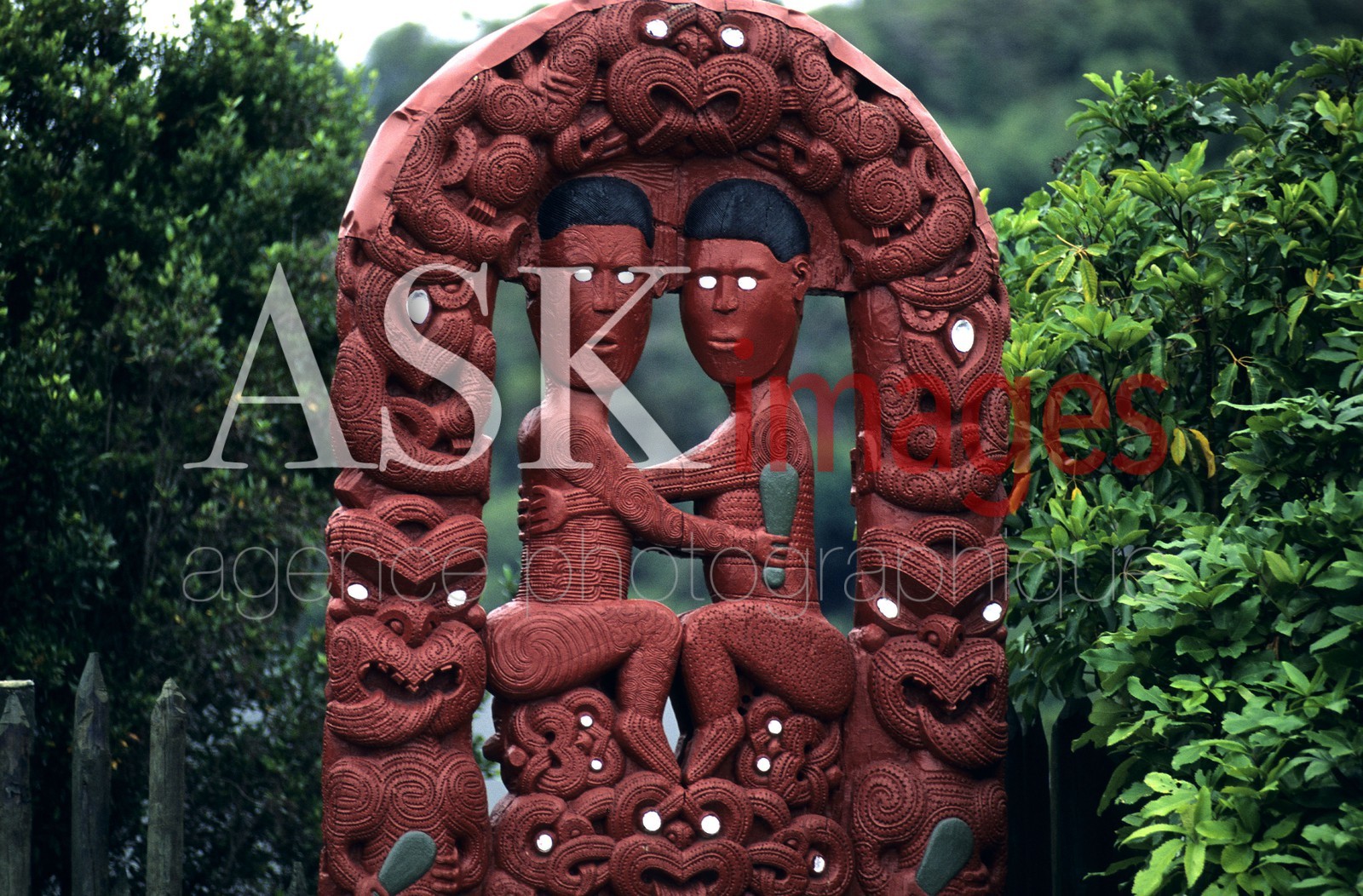 | Description | Sculpture at the entrance of the Maori Art Institut, Whaharoa, Rotorua, North Island, New Zealand. |