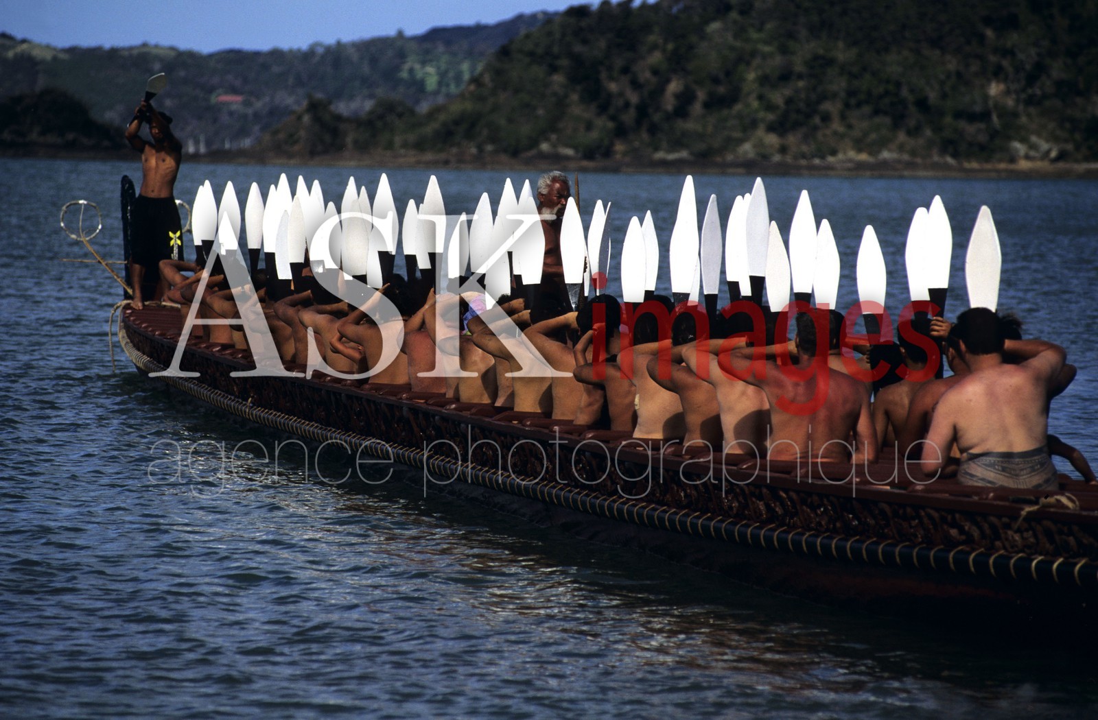 | Description | A waka, Maori pirogue, Waitangi Day, North Island, New Zealand. |