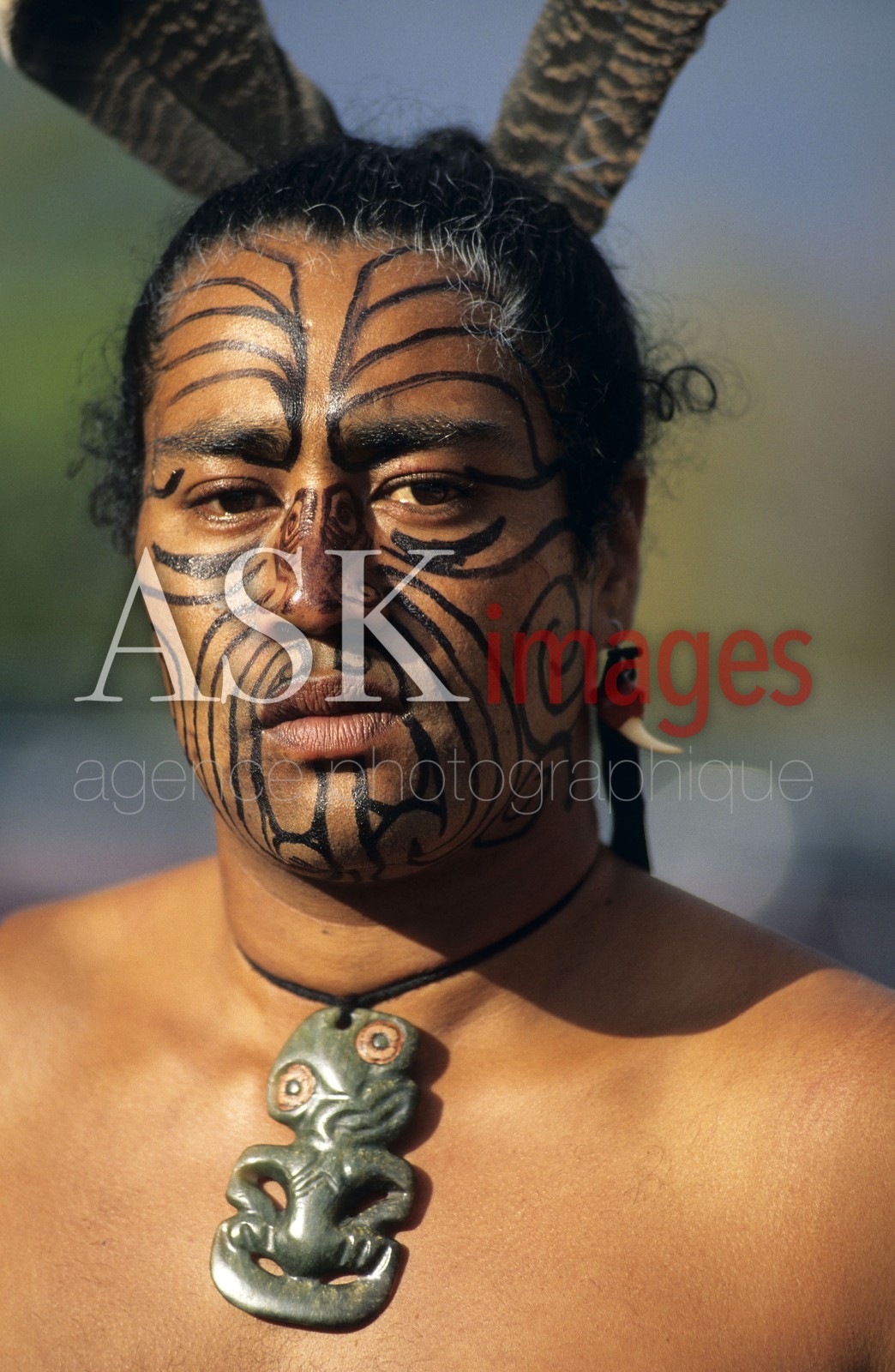 | Description | Portrait of a Maori dancer from Arawa tribe, Rotorua, North Island, New Zealand. |