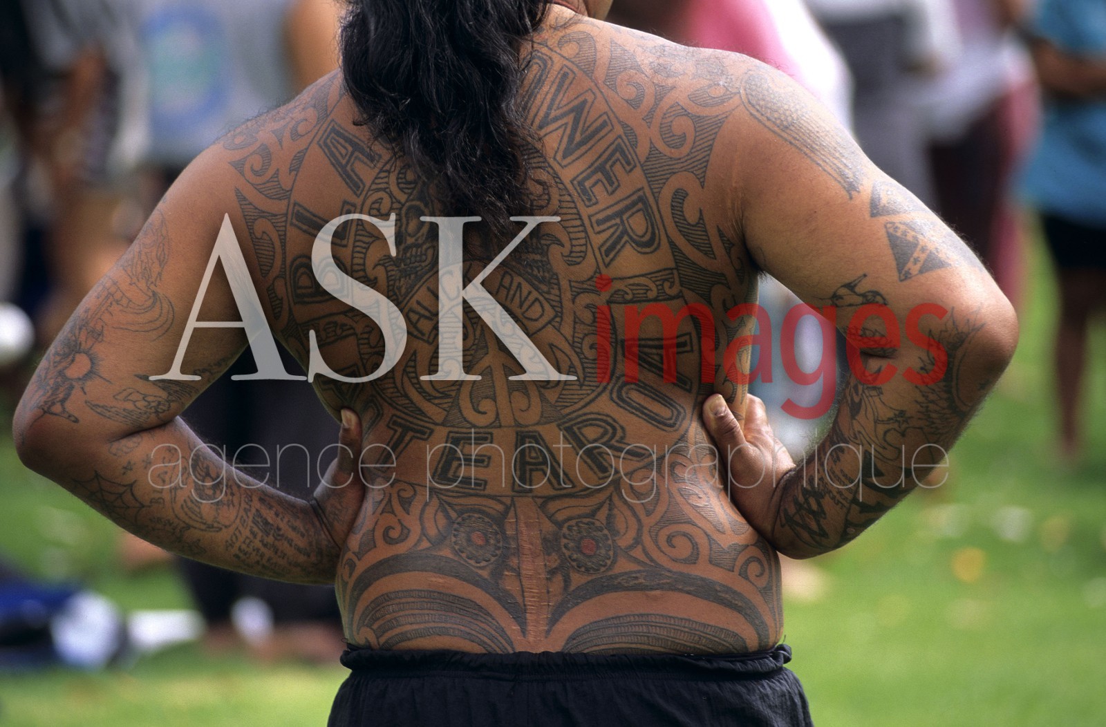 | Description | Tattoo in the back of a Maori man, Aotearoa, North Island, New Zealand. |