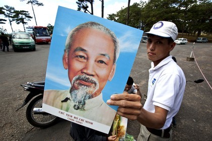 • Man selling poster of Ho CHI MINH, Dalat