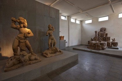 • Da Nag, Cham sculpture, statues of Dvarapala trampling a buffalo