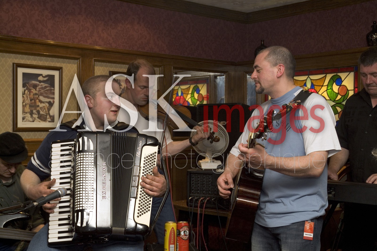 | Description | Orkney Folk Festival Stromness Orkney Scotland Musicians Playing Accordion Guitar Fiddle in Royal Hotel Lounge Bar. |