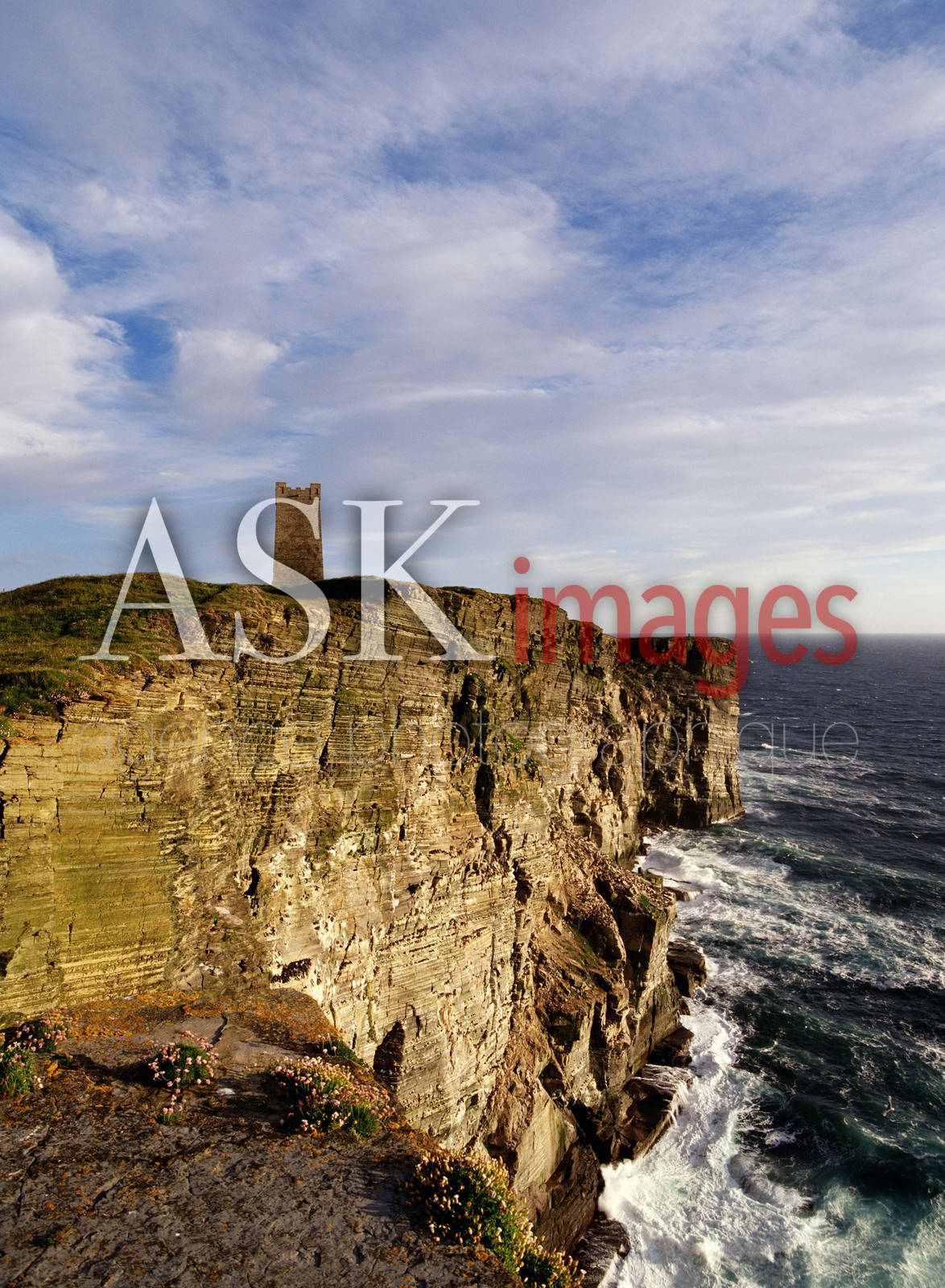 | Description | Kitchener Memorial sea pinks seacliffs sea waves Marwick Head.Marwick Orkney. |