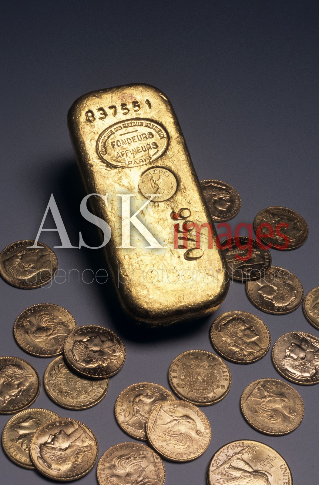 Gold bars (1 kg) and gold coins (Napoleon).