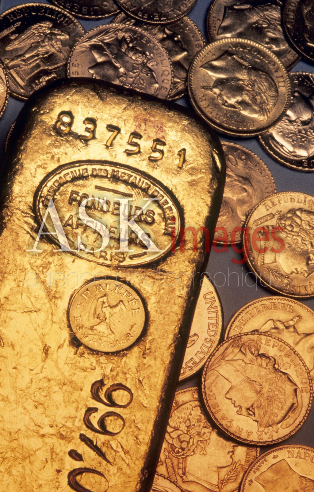 Gold bars (1 kg) and gold coins (Napoleon).