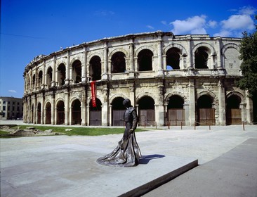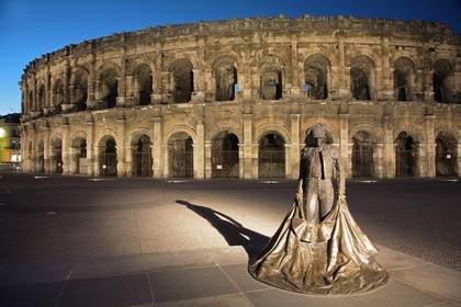 • France, Gard, Nimes, Arenes, roman arena, torreador statue.