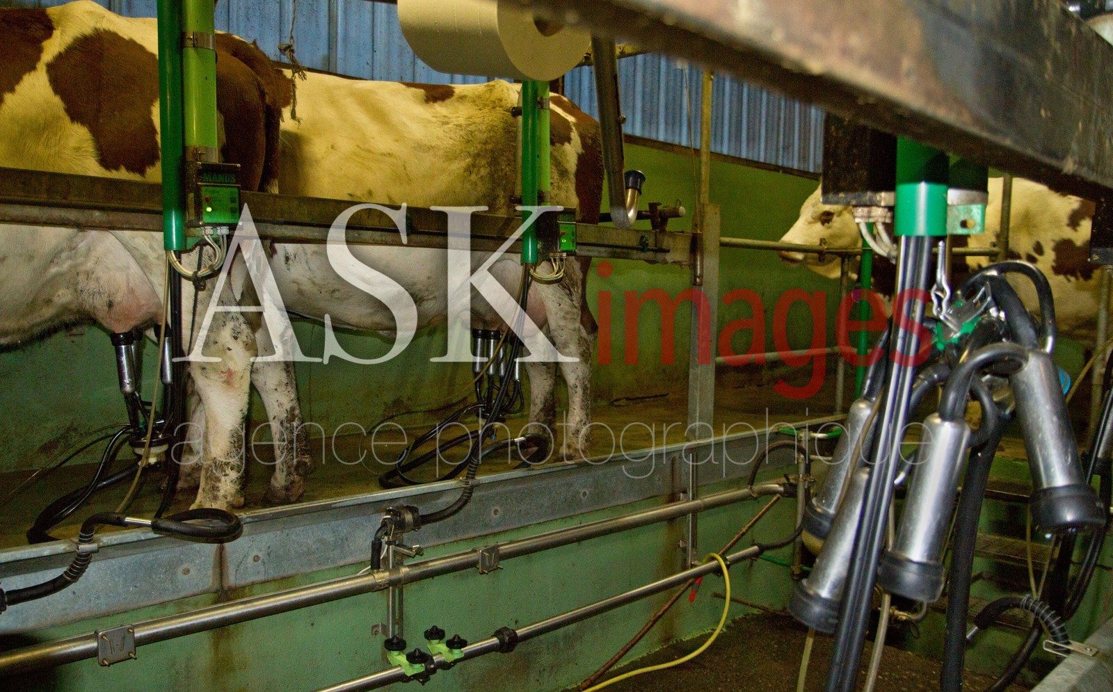 | Description | Auvergne, Puy-de-Dome, Saint Nectaire cheese, Farm and Production, cows with milking machine |