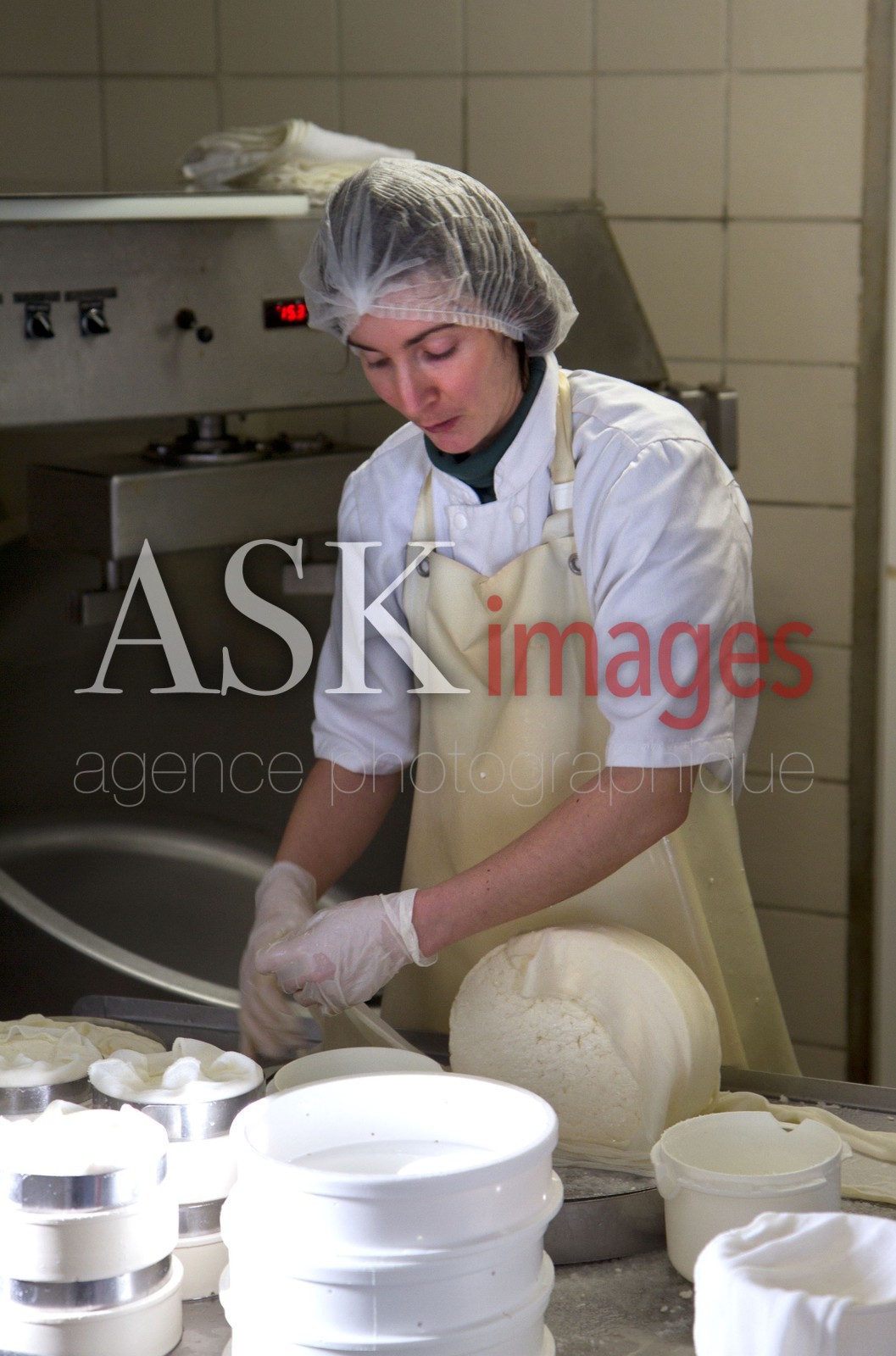 | Description | Auvergne, Puy-de-Dome, Saint Nectaire cheese, Farm and Production, farmer filling in mould and box with cream, Then this mould will go into cellar for maturation |