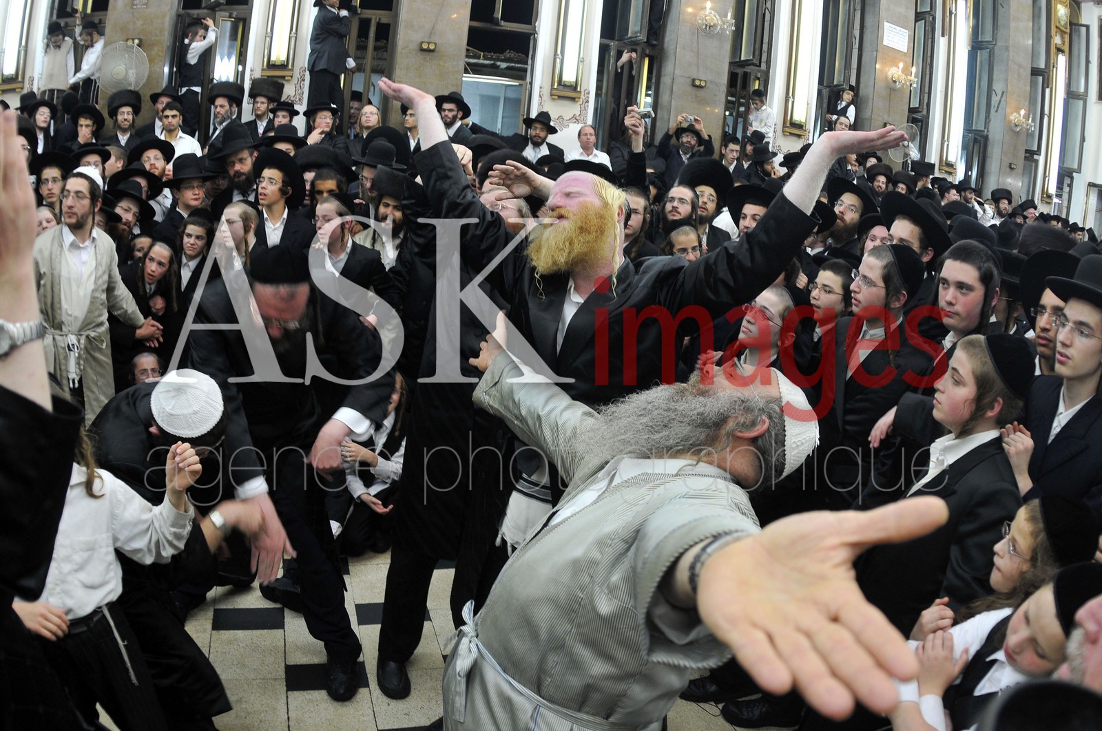 Hasidim Bretzlev dancing in Mea Shearim, Jerusalem