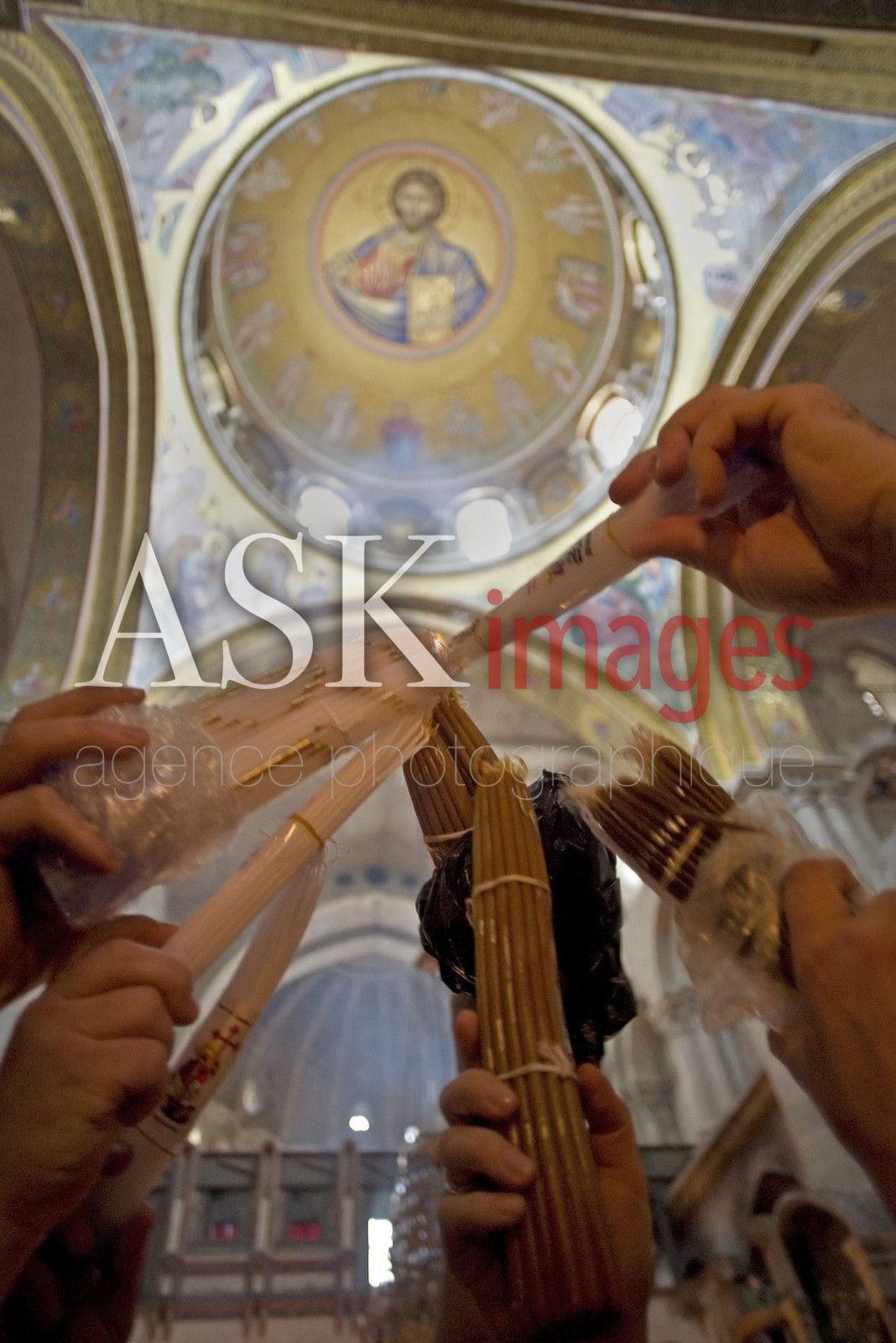 | Description | Israel, ceremonie de la Lumiere Sainte provenant du Tombeau de notre Seigneur Dieu et Sauveur Jesus Christ. *** Saturday Holy fire ceremony .The church of the Holy Sepulchre in Jerusalem. |