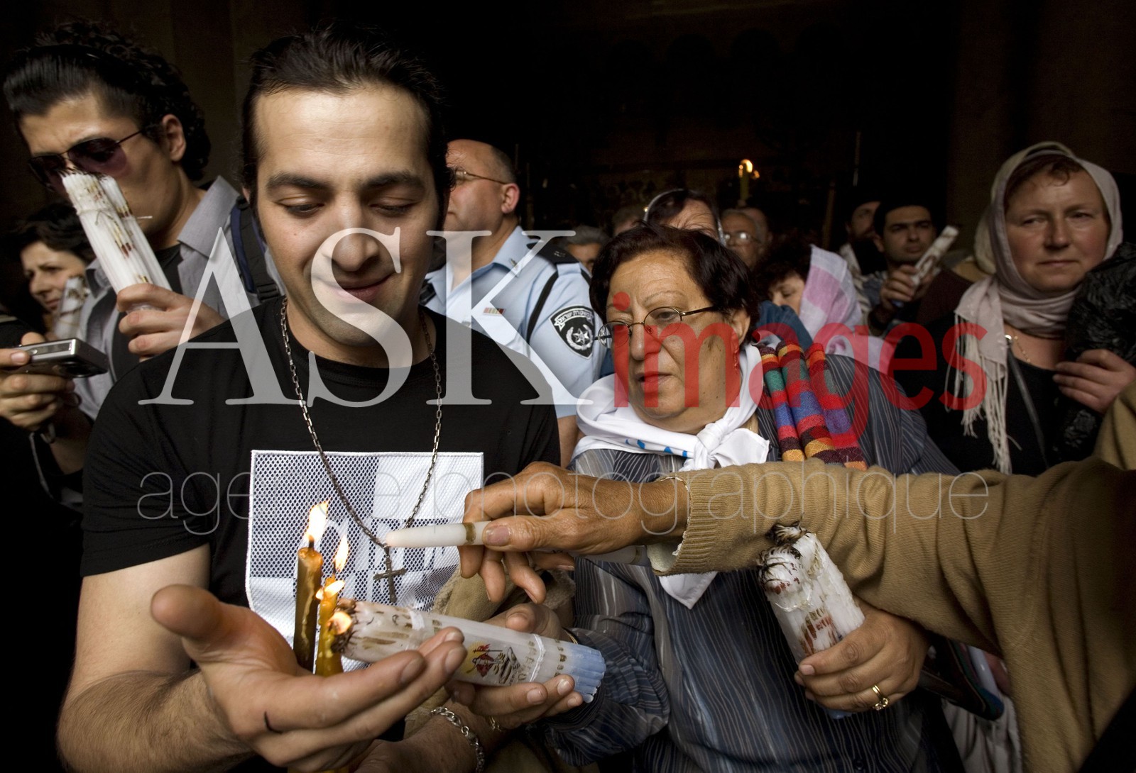 | Description | Israel, ceremonie de la Lumiere Sainte provenant du Tombeau de notre Seigneur Dieu et Sauveur Jesus Christ. *** Saturday Holy fire ceremony .The church of the Holy Sepulchre in Jerusalem. |