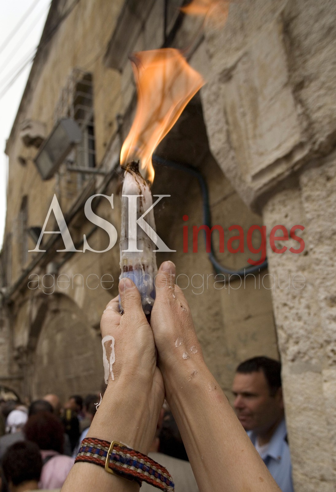 | Description | Israel, ceremonie de la Lumiere Sainte provenant du Tombeau de notre Seigneur Dieu et Sauveur Jesus Christ. *** Saturday Holy fire ceremony .The church of the Holy Sepulchre in Jerusalem. |
