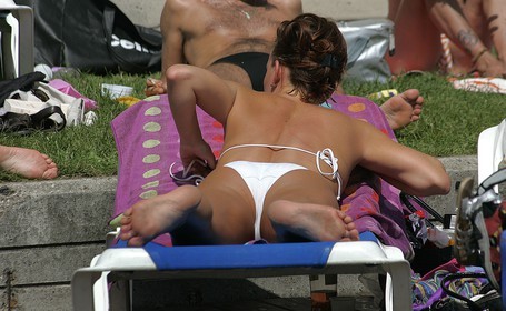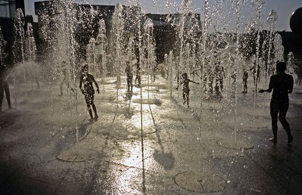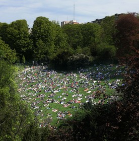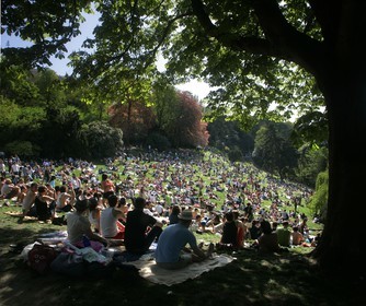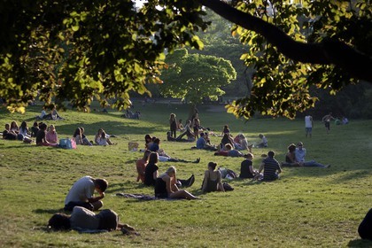• Paris, parc des Buttes Chaumont, heat wave, people on grass