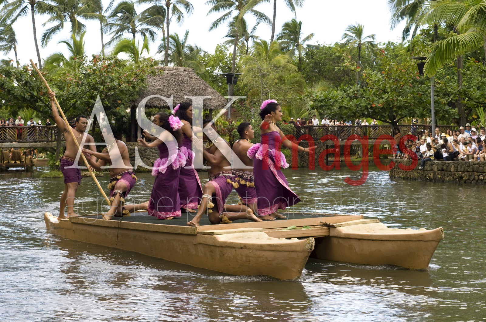 | Description | Central show in one of the lakes called Rainbown of Paradise where canoes parade singing songs, dances and martial arts in each country, in this case the people of Samoa, dressed puletasi lavalava men and women to honor the beauty of the sunsets of Polynesian. Polynesian Cultural Center. O'ahu. Hawaii. |