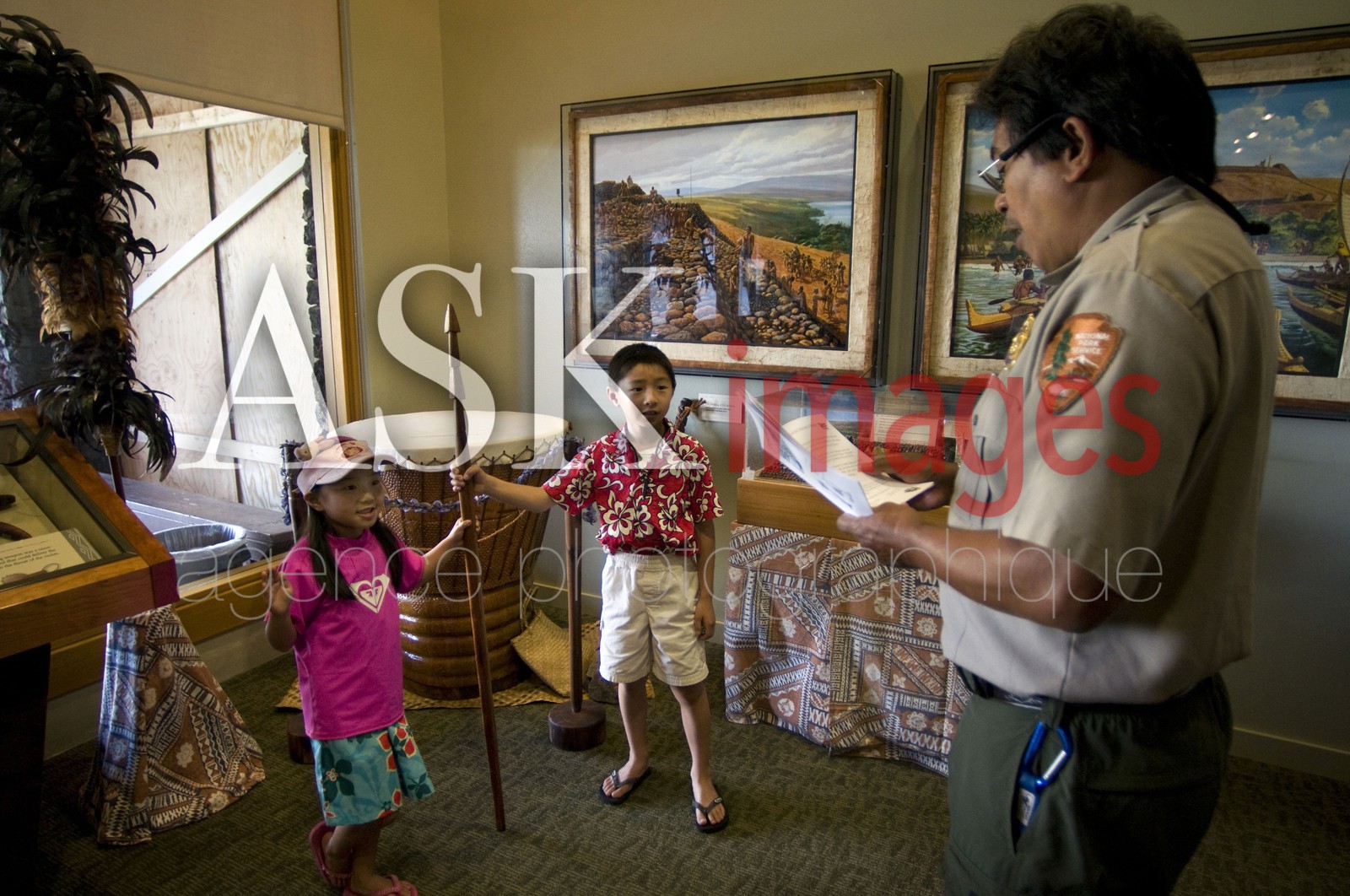 | Description | Puukohola Heiau National Historic Site, where Kamehameha I built the last temple on the island before getting any unification. Young tourists swearing a hypothetical constitution which undertake to respect the place and nature. Big Island, Hawaii. USA. |