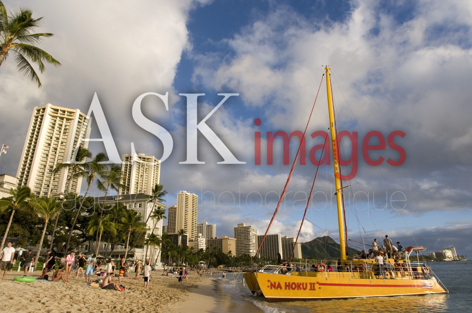 | Description | Hotels and boat tours on the seafront on the beach of Waikiki Beach. O'ahu. Honolulu. Hawaii. People tourists sunbathers sunbathing swimming hotels Waikiki Beach with Diamond Head in the background Oahu Island Hawaii. |