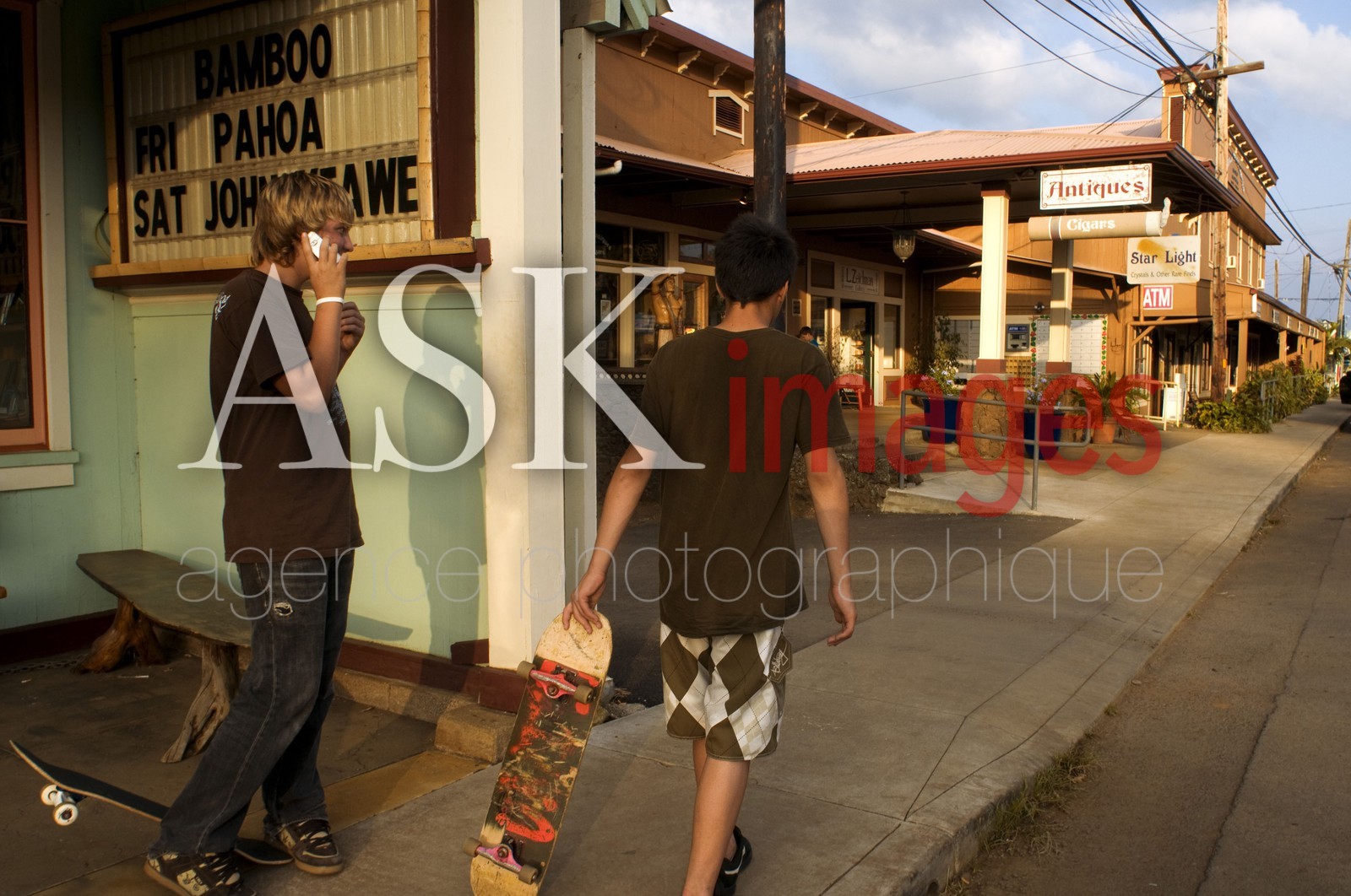 | Description | Skaters in Hawi. Hawi is the most northern town. Wooden houses painted in bold colors transform you into an atmosphere of the seventies, when the town was a thriving place dedicated fully to the sugarcane. Big Island. Hawaii. USA. |