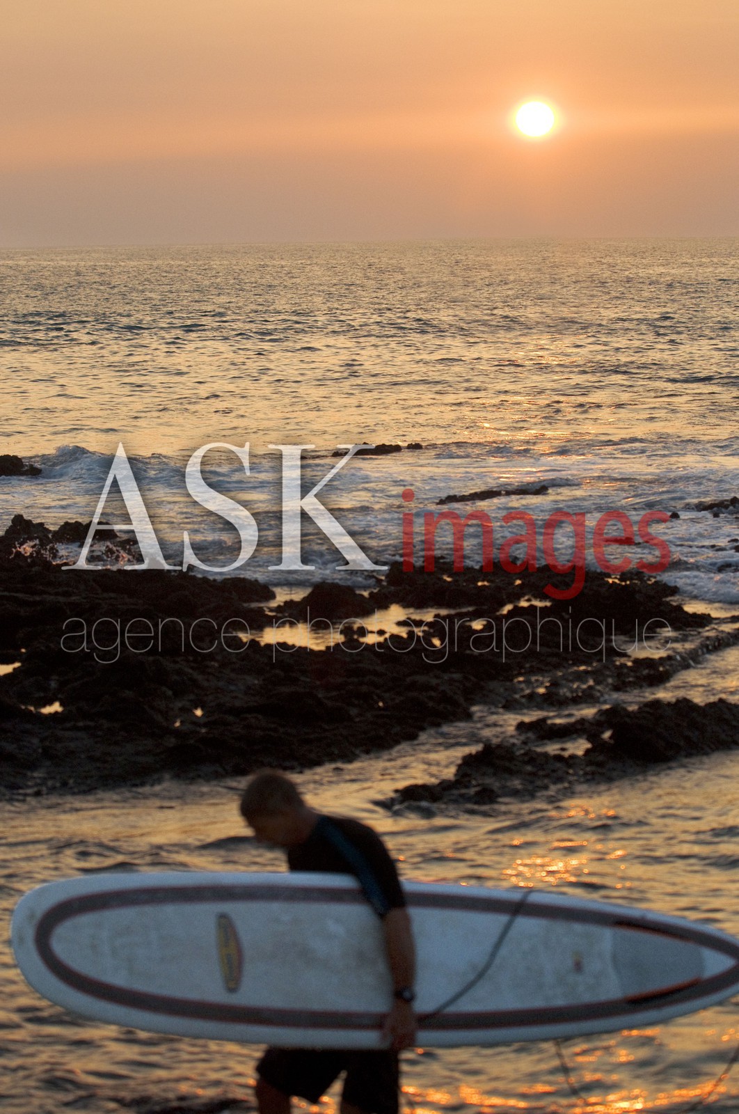 | Description | Surfer at sunset on the beach in Waikoloa. Big Island. USA. Surfers in the coral and lava flank Anaeho'omalu Bay in Hawaii. Waikoloa Beach is an area located on the South Kohala coast on the island of Hawaii and is located in the census-designated place of Puako. |