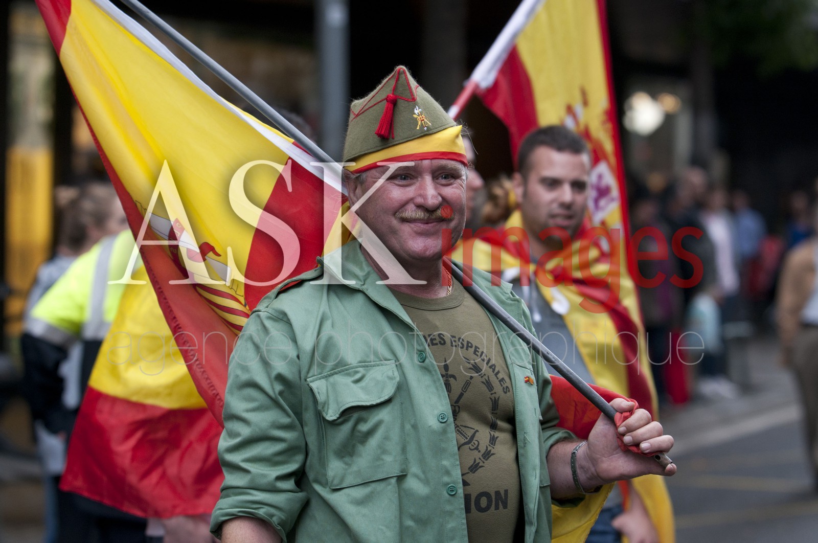 | Description | Barcelona, Spain. 12th Oct, 2014. Demonstrators doing the fascist salute during the Spanish Ultra Nationalism speech. Over 200 spanish ultra nationalist civilians has celebrated in Barcelona, the annual commemoration of October 12th as the Spanish National Day. Hispanic Day is marked by the crisis stalking Spain and the growing demand for independence by the Catalan population. Some thousands of people demonstrated for the union of the Spanish territory. |